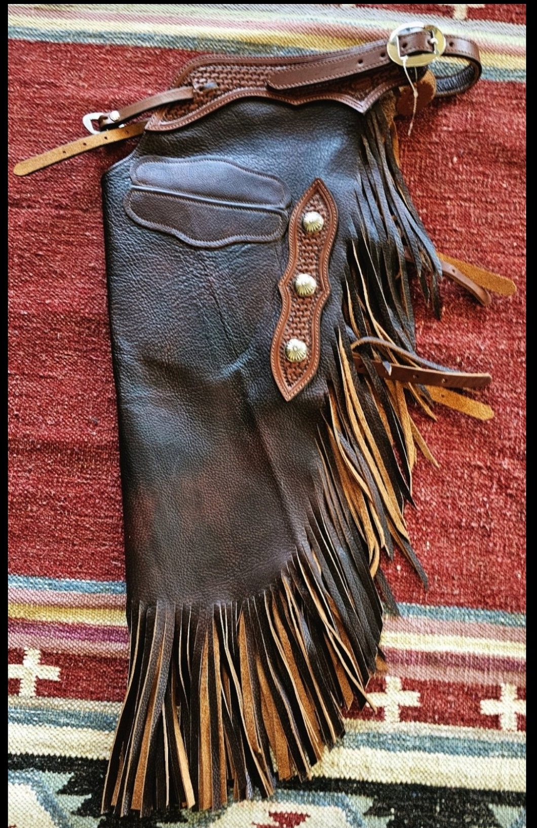 These Chinks from K Bar J are the same Copper colored cast leather with a lighter tooled yoke.