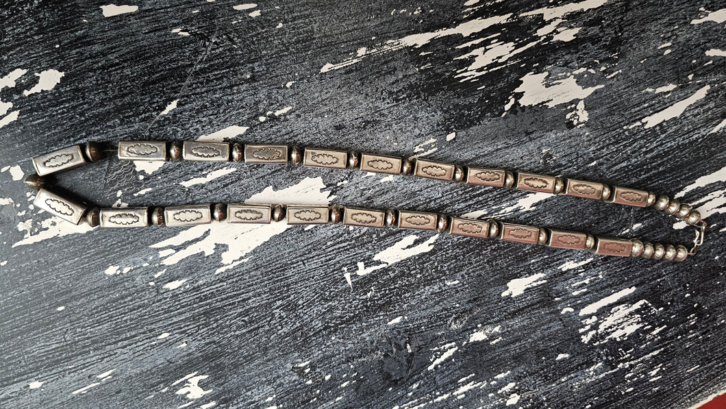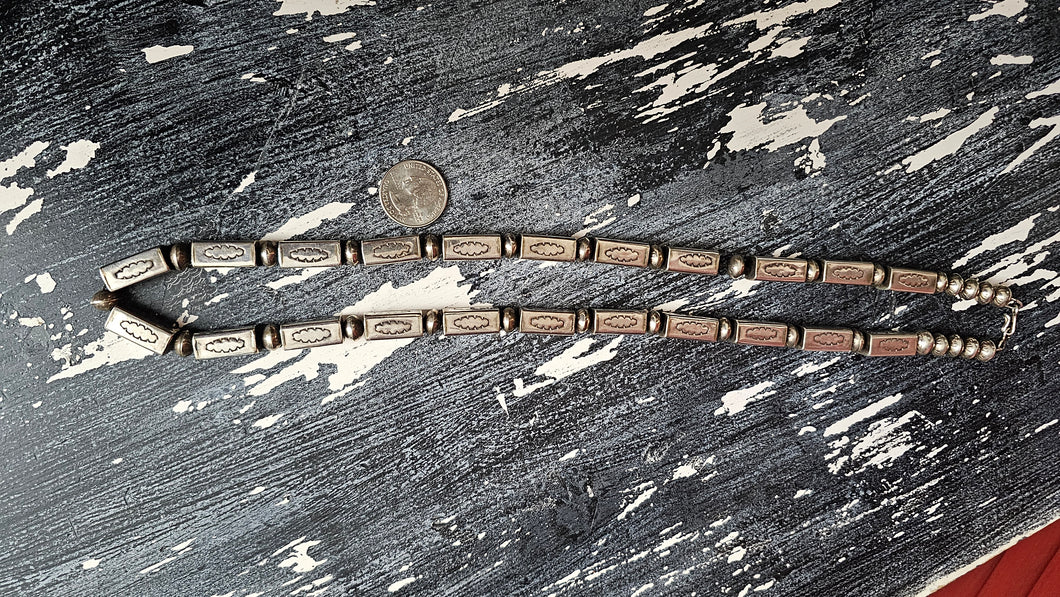 Vintage Sterling Necklace 28" Squared Design, one of a kind